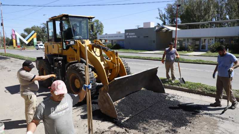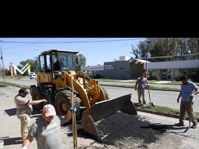 La municipalidad de Monte Maíz está realizando tareas de bacheo en la Avenida Juan Domingo Perón, una de las arterias principalesdel pueblo, deterioradas por el alto nivel de tránsito diario que tiene y por el paso del tiempo.