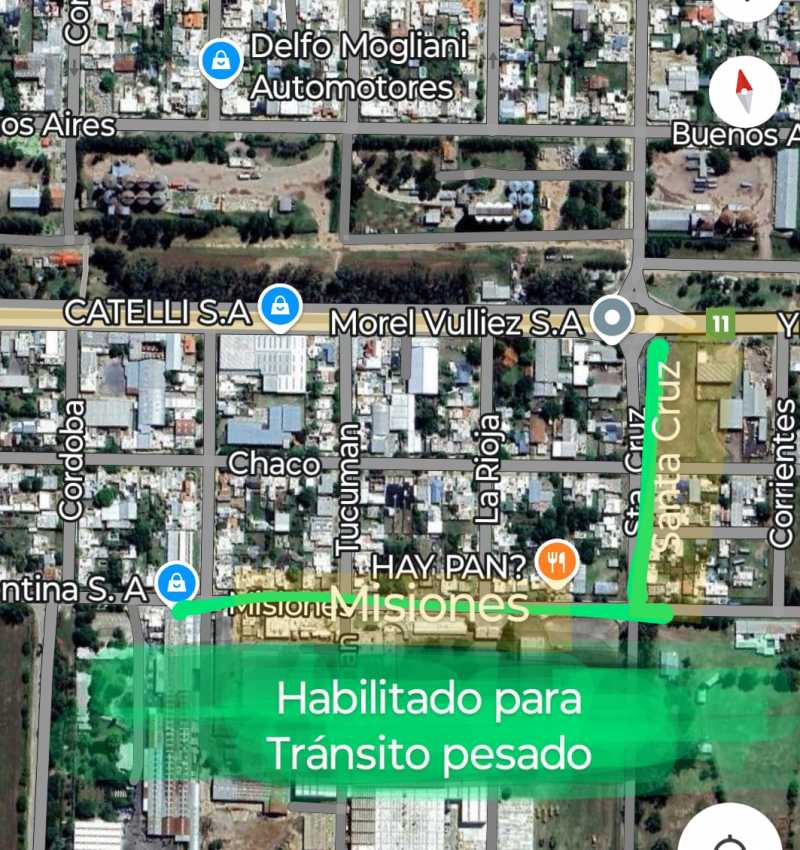 Los camiones que deban ir hacia la ruta que va a Colonia Barge, y que ingresen por el sector oeste de la localidad, deberán seguir hasta la calle Santa Cruz para poder acceder luego a la mencionada ruta.