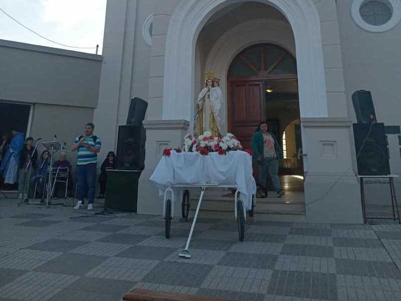 El peregrinar del pueblo fue acompañado por cánticos y plegarias por las instituciones del pueblo, por las familias y por Monte Maíz en general.