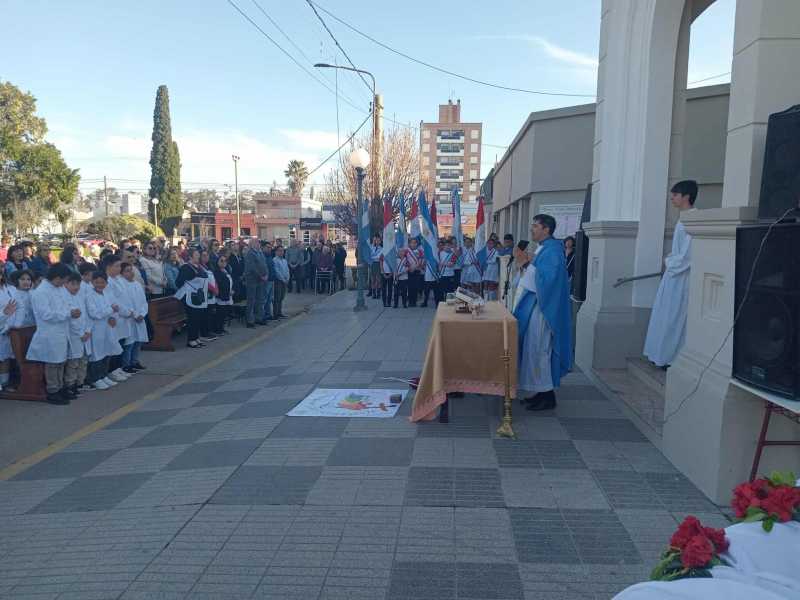 De la procesión participaron autoridades municipales; de instituciones educativas, deportivas y civiles y fuerzas vivas locales. El Padre Martín Simonassi junto a otro sacerdote de la región fueron quienes guiaron las actividades de estas Patronales 2025.